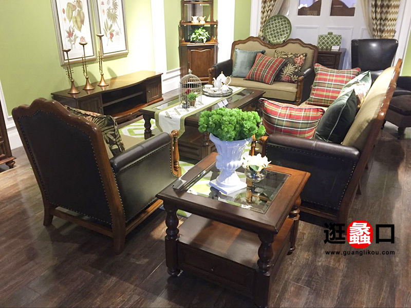 A家家居-ArtHouse美式客厅双人位三人位/单人位皮艺沙发组合/茶几