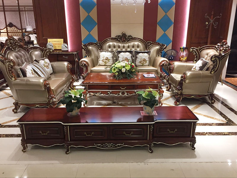 戈诺美家具欧式实木描金客厅双人位/三人位/单人位沙发组合