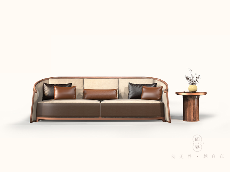 阅界新中式家具新中式客厅北美黑胡桃木实木三人位圈椅式沙发