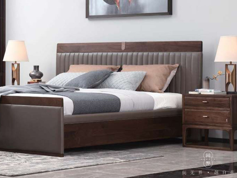 阅界新中式家具新中式卧室紫檀实木雅致时尚双人床+床头柜组合