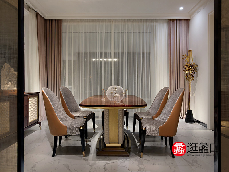 制谱家家具轻奢餐厅优雅皮质长餐桌椅组合