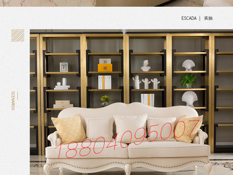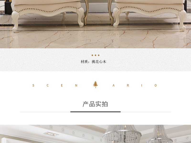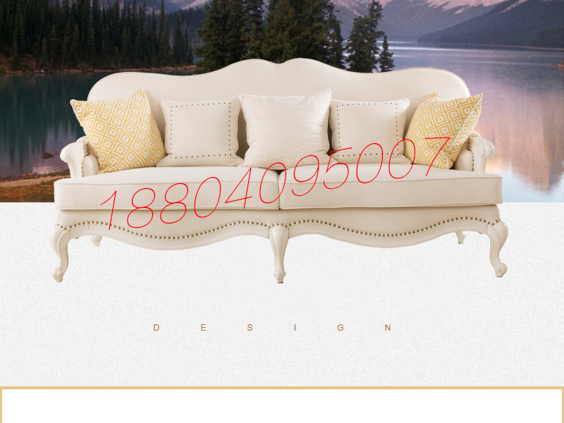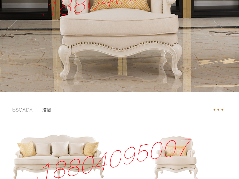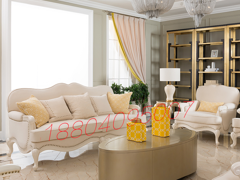 达西美家 美式客厅桃花芯木仿古白三人位布艺沙发/单人位沙发1702​/茶几​
