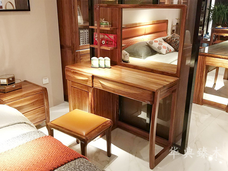 华典臻木·欧尚格家居新中式卧室乌金木实木典雅梳妆台+妆凳组合
