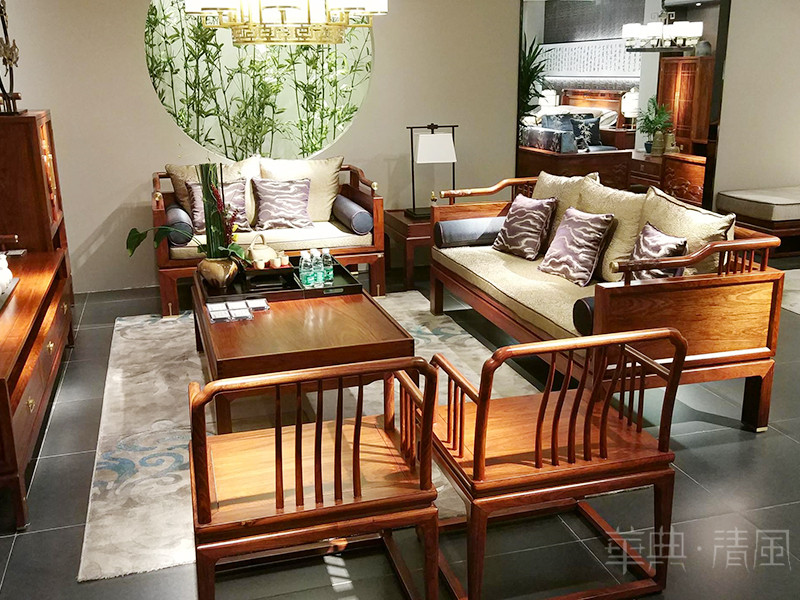 华典清风·欧尚格家居家具新中式客厅刺猬紫檀红木1+2+3沙发/茶几/电视机柜组合