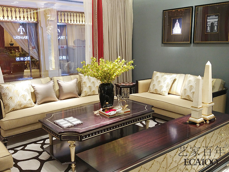 【艺家百年·欧尚格家居】新古典客厅桃花芯木实木沙发茶几组合