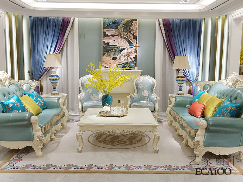 【艺家百年·欧尚格家居】新古典客厅桃花芯木实木简约优雅沙发茶几组合