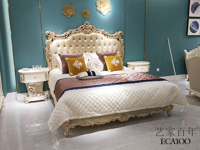 【艺家百年·欧尚格家居】新古典卧室桃花芯木实木典雅软靠大床