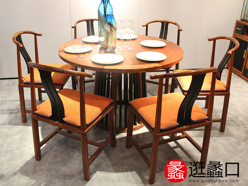 名佳悠季·时尚红木家具新中式餐厅红木时尚圆形餐桌椅组合