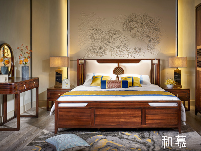 和慕家具新中式卧室实木简约淡雅舒适软靠双人大床