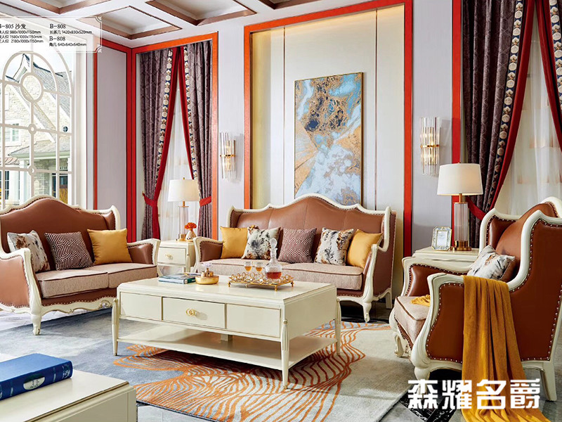 森耀名爵家具欧式极简客厅金楸檀木实木B-805沙发茶几组合