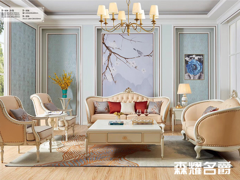 森耀名爵家具欧式极简客厅金楸檀木实木B-806沙发组合