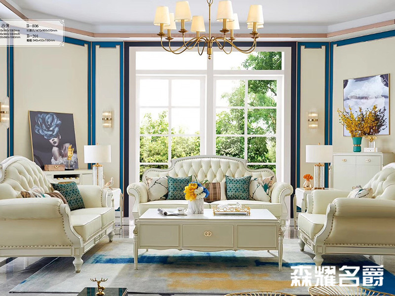 森耀名爵家具欧式极简客厅金楸檀木实木B-801沙发