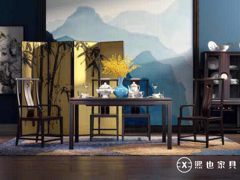 熙也家具新中式餐厅简约时尚餐桌椅组合