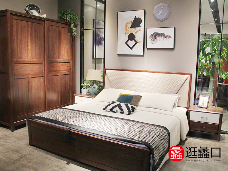 乔治家居北欧卧室时尚简约舒适双人床+床头柜组合