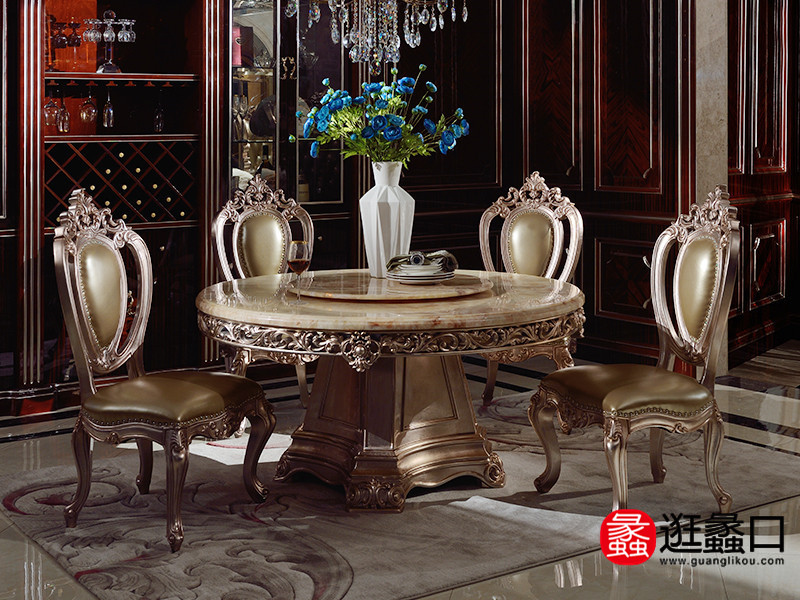伯爵美墅家具欧式餐厅时尚圆形带转盘餐桌椅组合