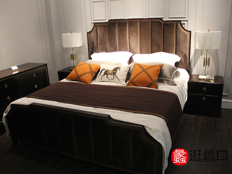 MA家具轻奢卧室时尚深色双人床+床头柜组合