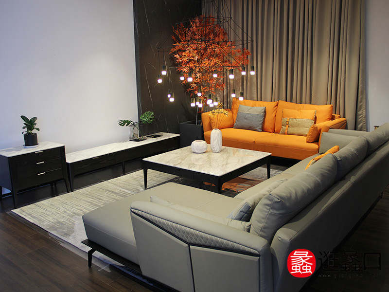米梵家具现代客厅现代简约时尚皮质沙发+茶几组合