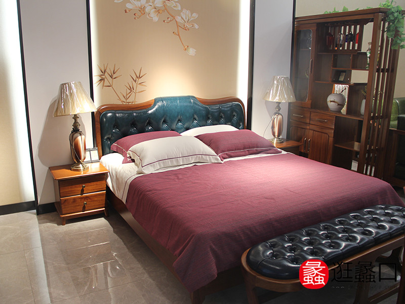 轩木缘家具新中式卧室简约皮质软靠双人大床