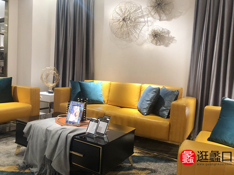 赫美尔家具轻奢客厅时尚亮色活力沙发+茶几组合
