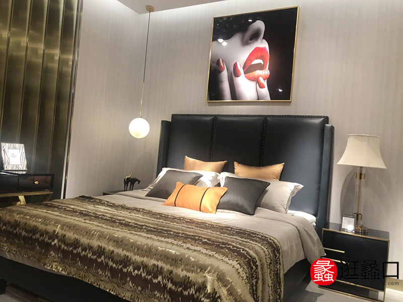 赫美尔家具轻奢卧室简约时尚舒适软靠大床+床头柜组合