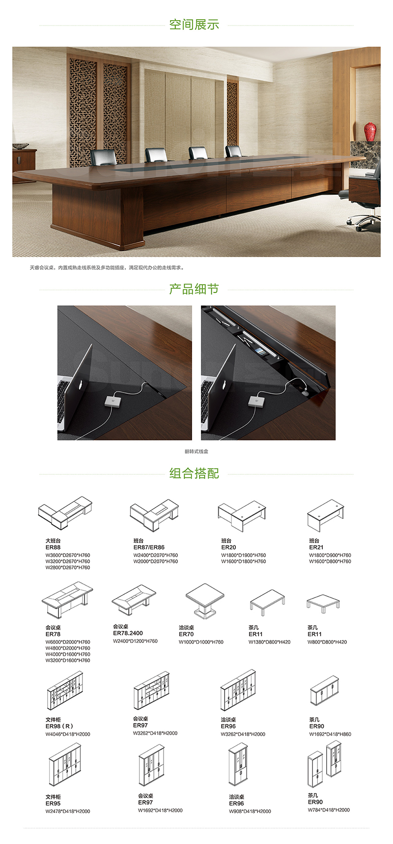 圣奥办公家具天睿ER78洽谈桌接待桌6.6/4.8/4/3.2/2.4米会议桌