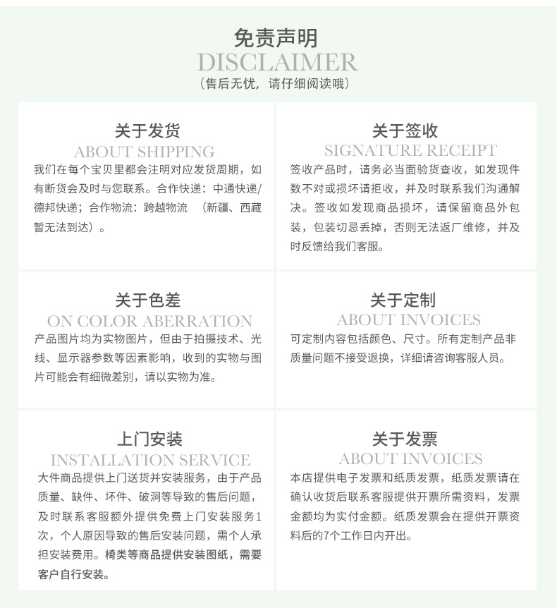用户在本家具品牌店铺购买的家具,如发现严重质量问题,需要退换货的,请与本店铺联系退换货事宜。