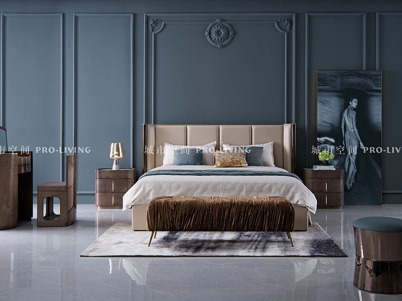 城市空间PRO-LIVING家具轻奢卧室极简舒适双人软靠大床+床尾凳组合CS020
