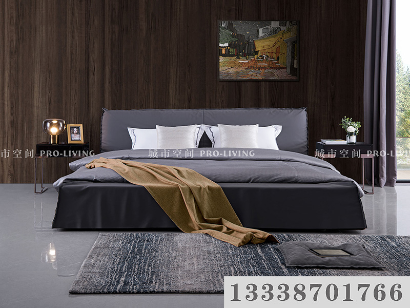 城市空间PRO-LIVING家具轻奢卧室时尚舒适灰色大床012