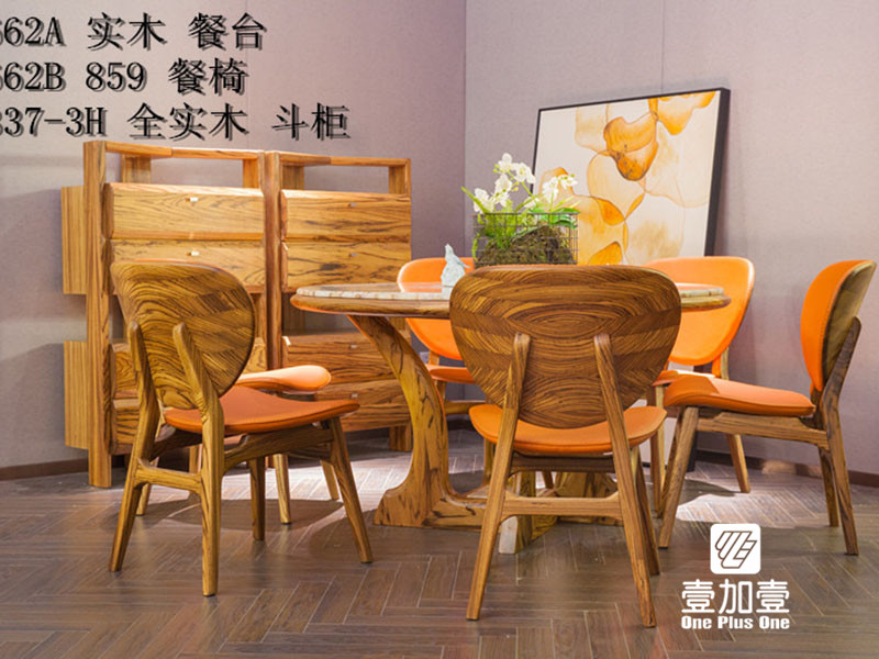 壹加壹家具现代简约餐厅中国风乌金木实木9662AB餐桌椅组合