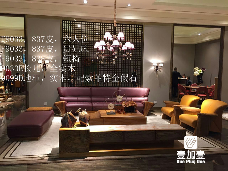 壹加壹家具现代简雅客厅乌金木实木F9033大气经典沙发组合