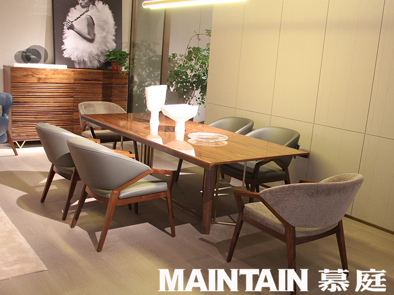 慕庭家具意式现代极简餐厅北美黑胡桃木时尚餐桌椅
