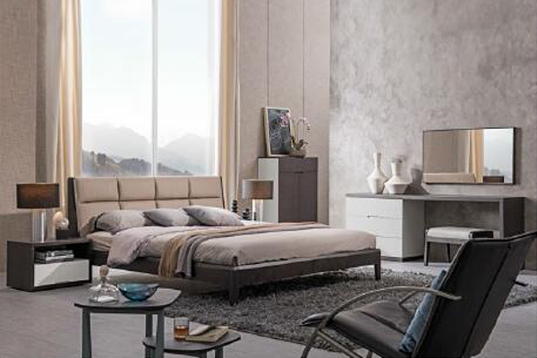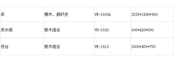 美迪家具·碳化系列现代橡木超纤皮双人床VB-1603A/床头柜VD-1620/妆台VE-1612