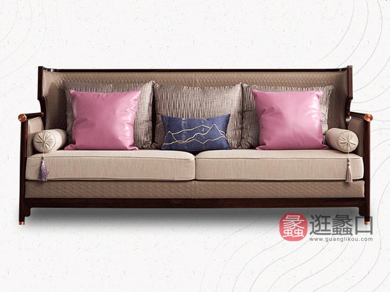新中式乌金木全实木真皮沙发【三人位2000*850*970mm】G01-3 ,9180元