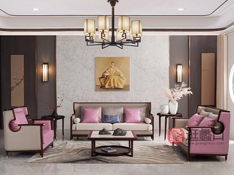 新中式乌金木全实木真皮沙发【双人位1600*850*970mm】G01-2 ,7320元