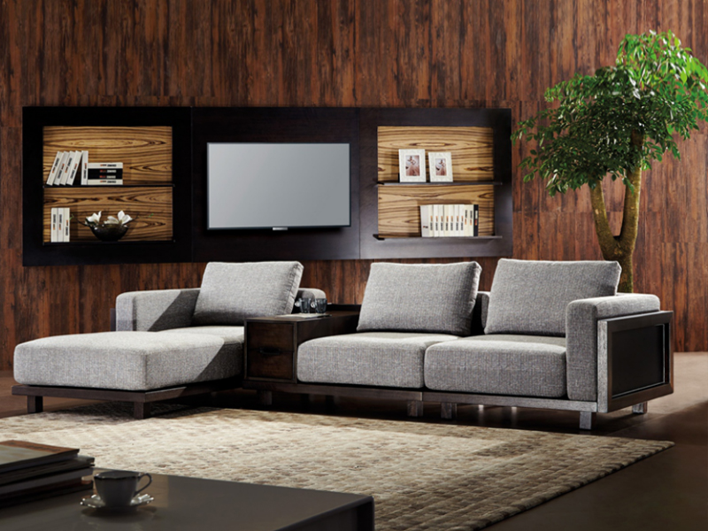家元素家具现代简约极简客厅实木布艺转角沙发组合/茶几