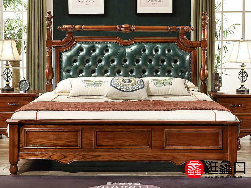 欧宜佳·艾莉雅家具美式卧室雕花皮艺软靠双人大床
