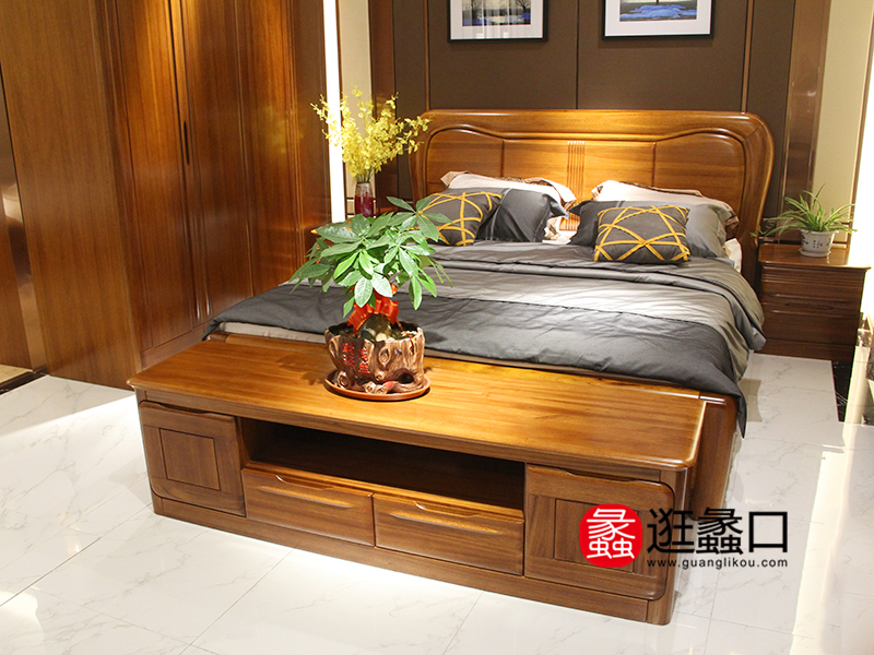 安铭居家具中式卧室金丝檀木实木双人大床/床头柜