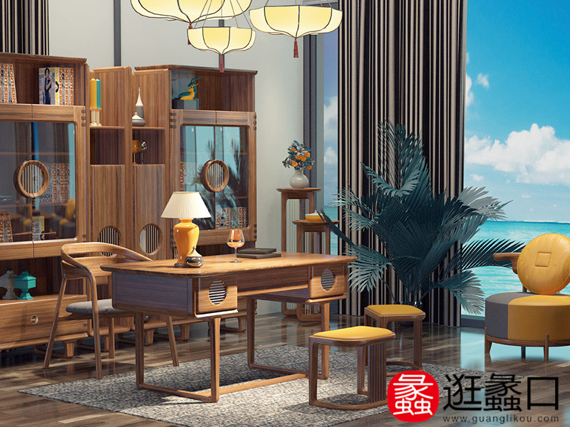 卡纳基·朗森家具新中式书房实木简约实用书桌椅书柜组合