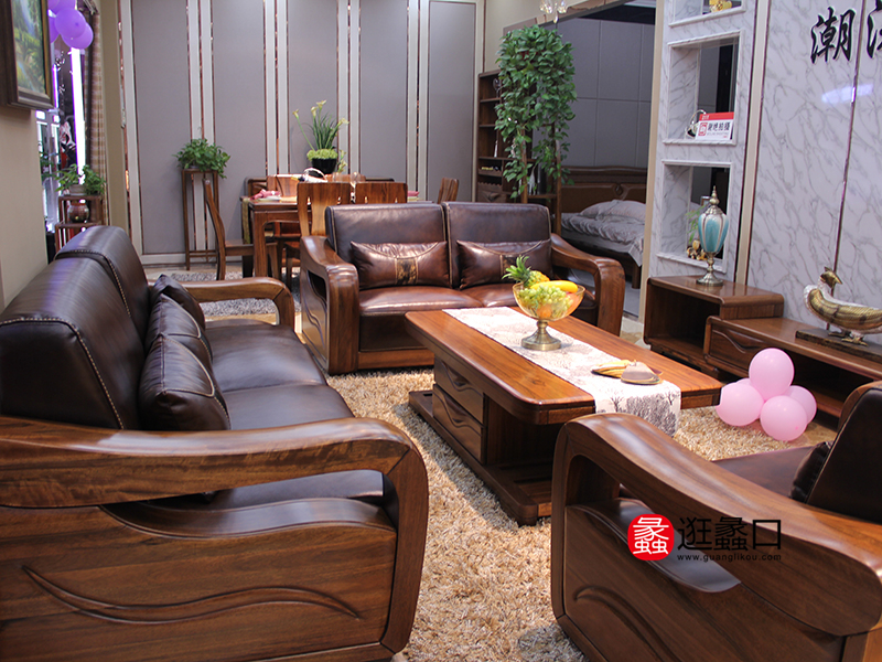 潮港家私中式客厅实木双人位/单人位/三人位沙发组合/茶几