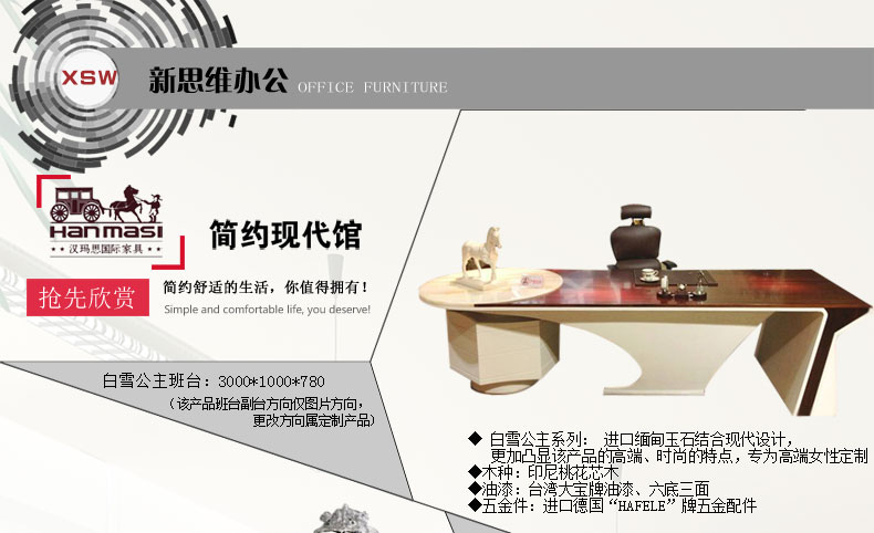 新思维 汉玛思 白雪公主系列 班台办公桌书柜
