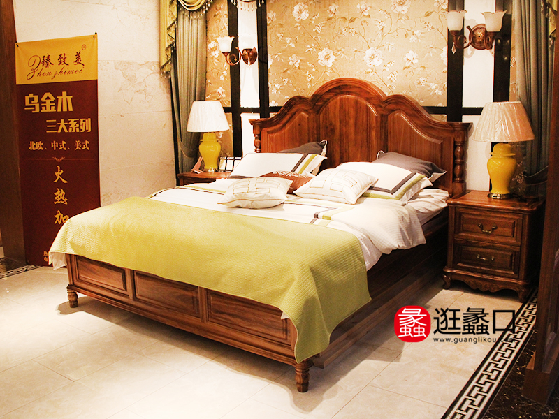臻致美家具美式经典款卧室实木双人床/床头柜