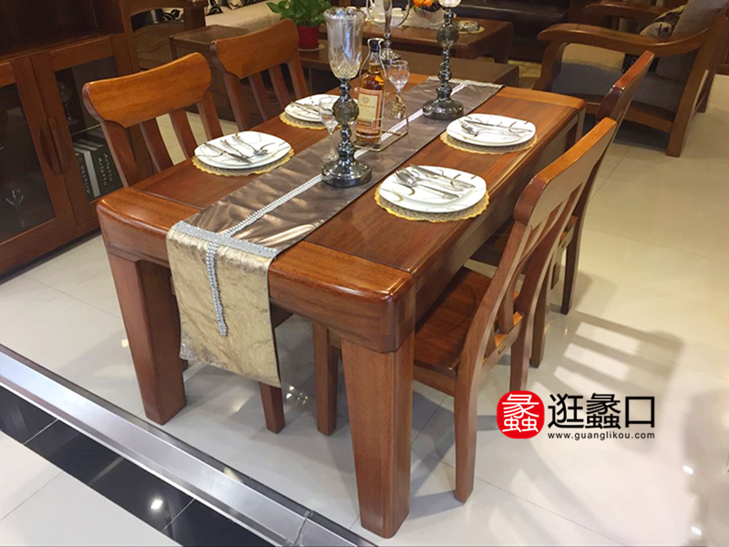 褔庭雅格家具中式经典款餐厅实木长餐桌/餐台/无扶手餐椅