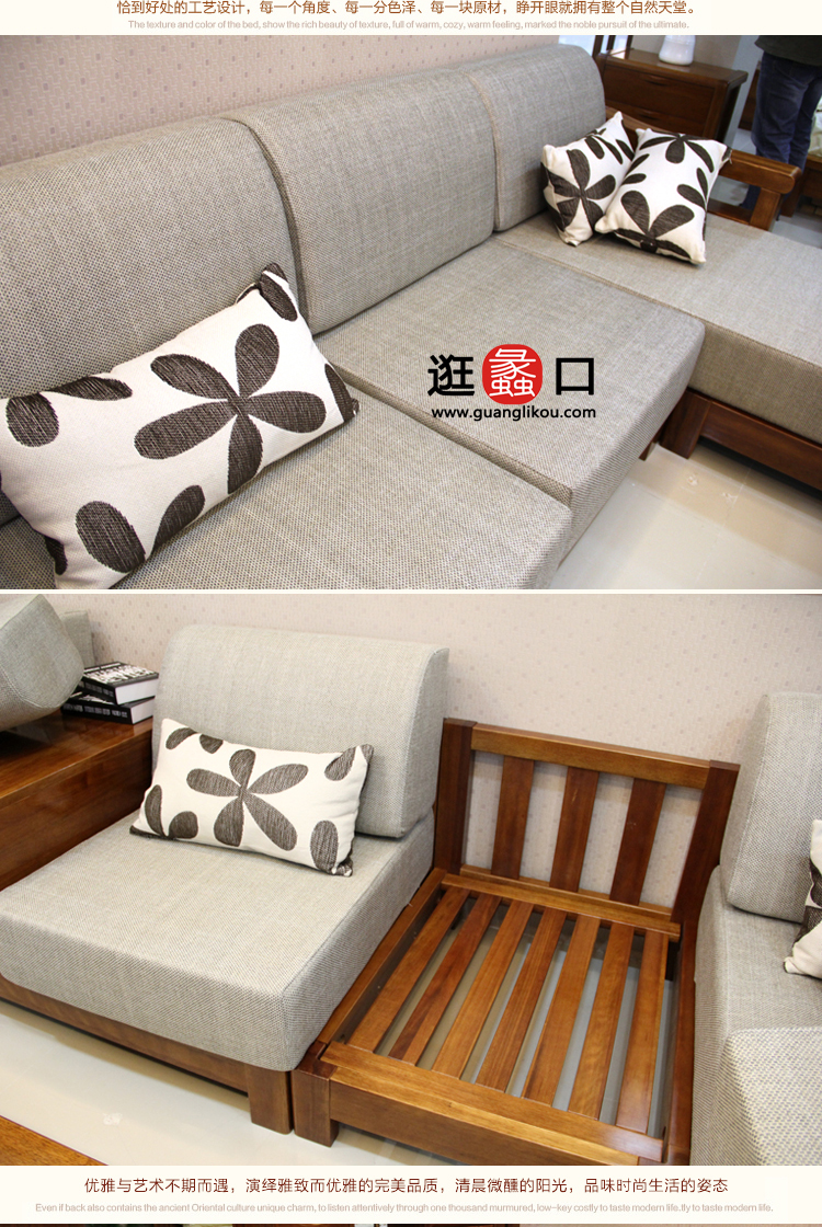 永铭家具简约现代客厅100%金丝胡桃木转角沙发