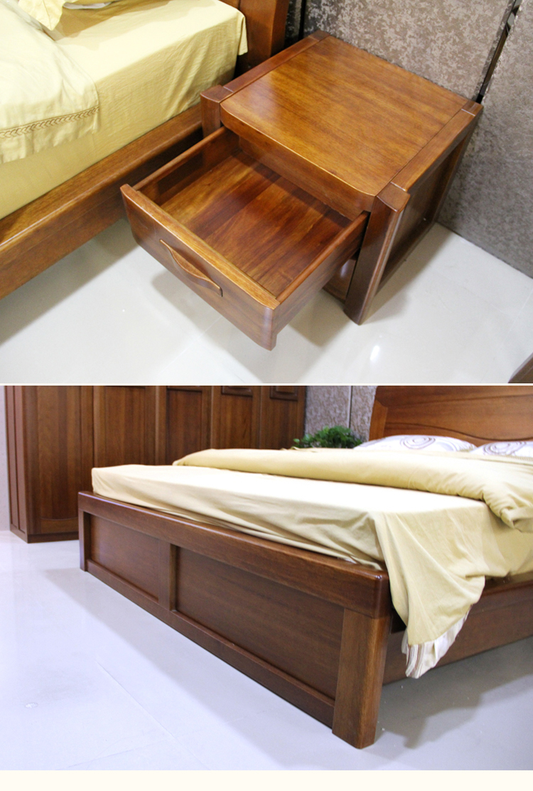 永铭家具简约现代卧室三件套胡桃木床+床头柜+衣柜