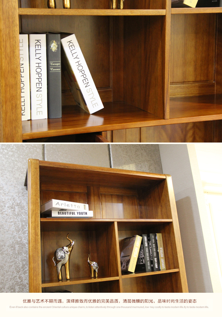 永铭家具简约现代书房胡桃木/纯实木书桌(带书架)