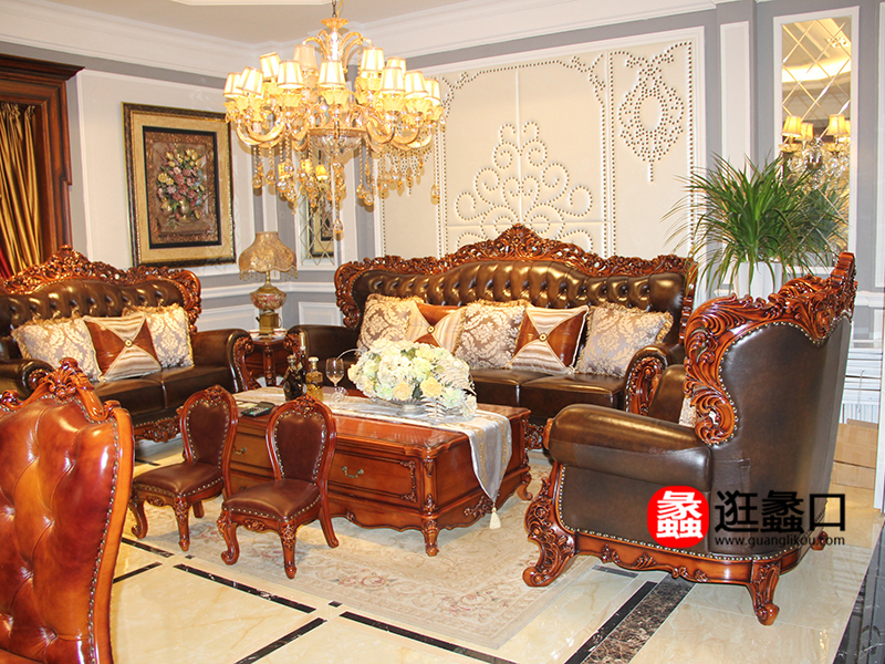 爱美轩家具欧式实木皮艺双人位/三人位/单人位沙发组合