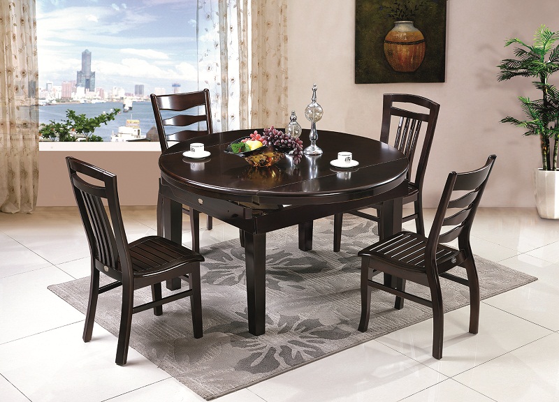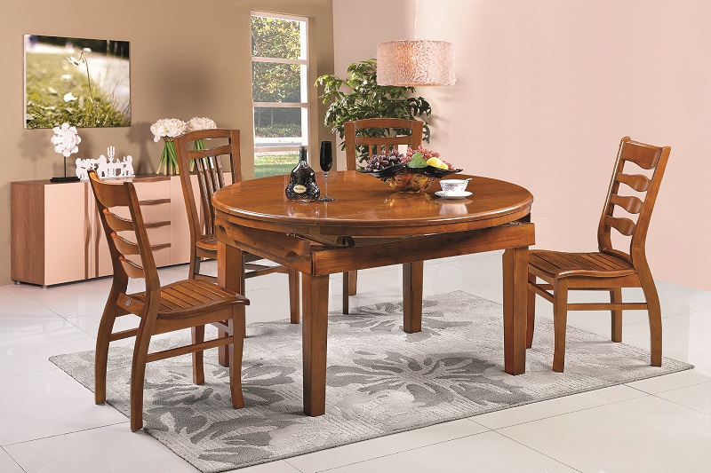 尚肴居中式古典餐厅餐桌椅--经典抽拉折叠圆桌1.35-1.5