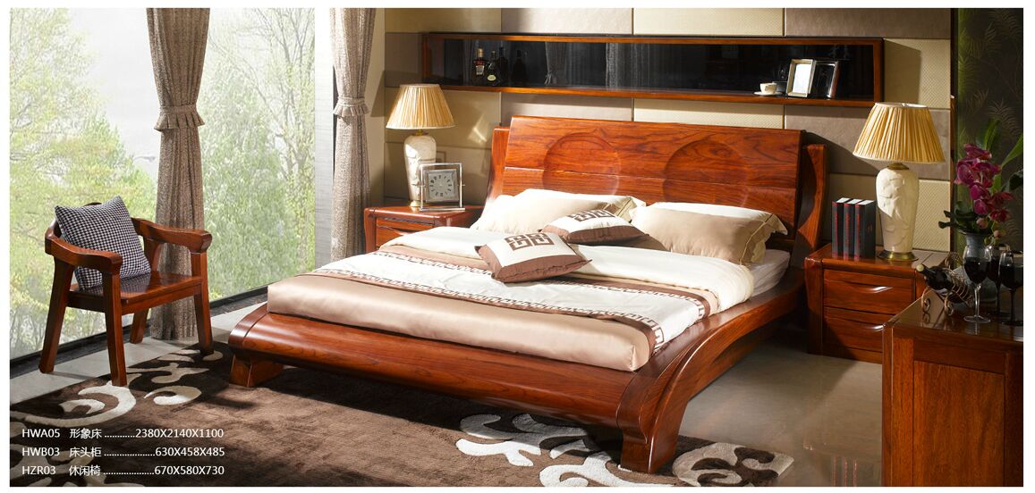 太阳树简约现代卧室床南非红翅木全实木形象床
