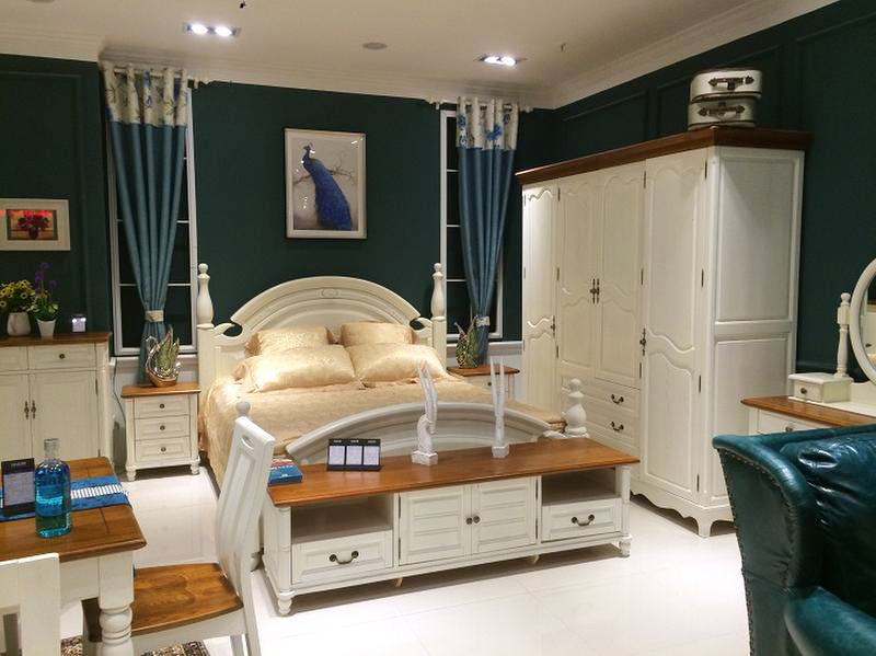 美墅福邸美式卧室实木双人大床/床头柜