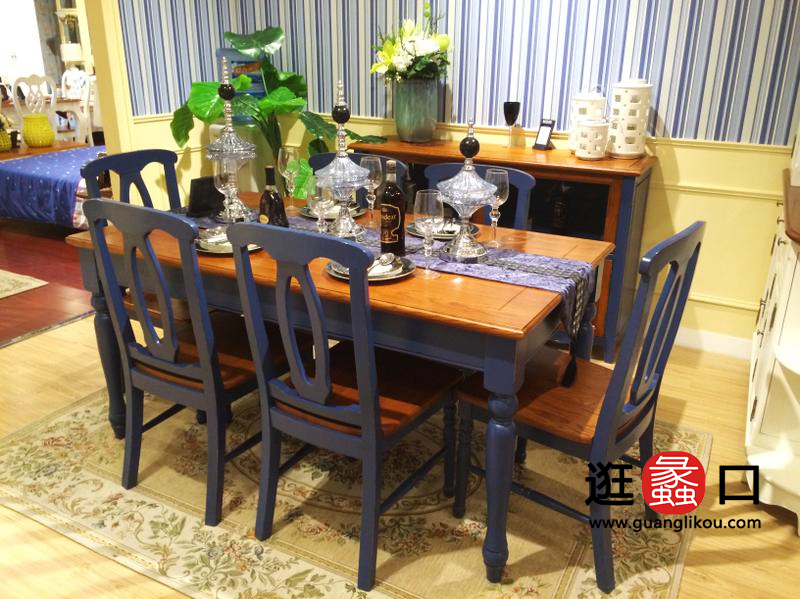 美墅福邸美式餐厅地中海实木餐桌椅